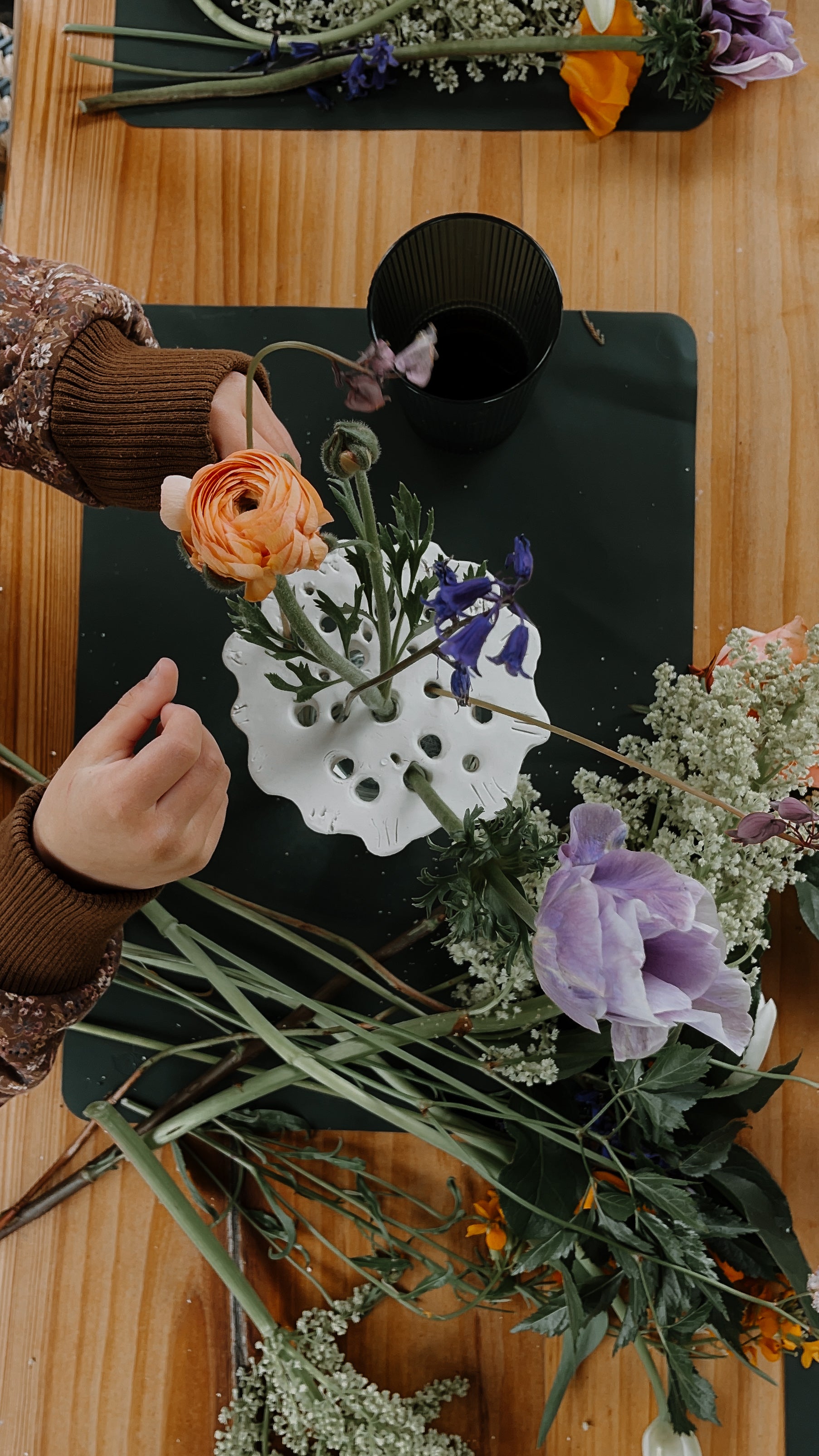 Using your dragon breath we will roll, mold and shape polymer clay into a useful tool for floral design. After your creation finishes baking, you will pick and arrange your very own garden bouquet with the help of your flower frog.
